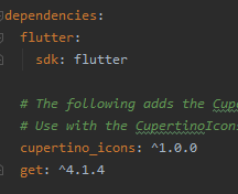 pubspec.yml의 dependencies 아래에 get을 추가해준다.
