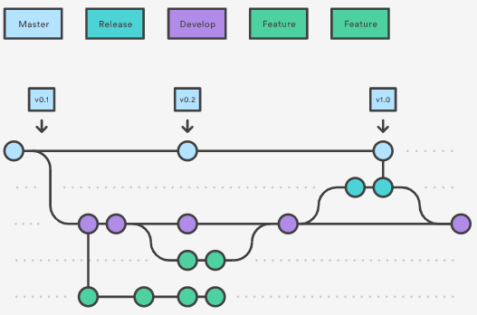 개발하고 있는 여러 기능들을 Develop 브랜치에서 Merge하고 완료되면 Master 혹은 Release 브랜치로 Merge한다.