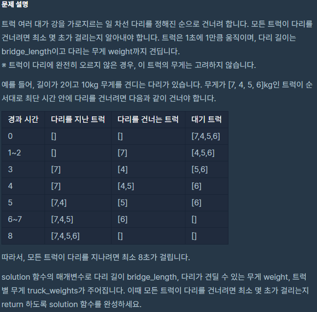 이때 다리를 지나는 트럭의 무게를 계산해서 트럭을 옮겨준다.